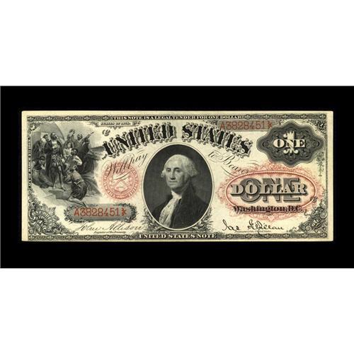 <B>Fr. 27 $1 1878 Legal Tender Choice New.</B></I> This previously unreported note falls neatly within a CU run that is listed in the census. The face of the note is barely off-center costing it a Gem designation, but this Ace still provides plenty of bang for the buck.<BR><I>From The Bill and Kathy Stella Currency Collection</B></I><BR><BR><b>Shipping:</b> Coin/Currency (<a target="_blank" href="http://www.heritageauctions.com/common/shipping.php">view shipping information</a>)