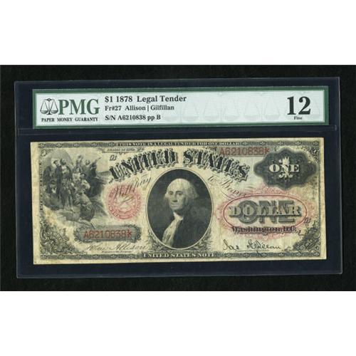 Fr. 27 $1 1878 Legal Tender PMG Fine 12.