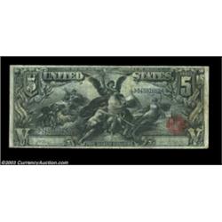 Fr. 270 $5 1896 Silver Certificate Fine-Very Fine. Another solid, problem-free note from the Hubbard Collection. This scarce signature combination is not often seen in natural circulated condition. This one is a lovely piece for the grade. Important notice: Heritage usually auctions material at the rate of 200-250 lots per hour. On some occasions eBay Live bid software or the Internet may not be able to keep up with the pace of the auction. We recommend placing a realistic absentee bid now as insurance to avoid disappointment. Occasionally the auctioneer may eliminate or reject an eBay Live bid, and the auctioneer may also reopen a lot after the close of the eBay live bidding (usually because we missed an audience bid), and may reject your bid even if it shows you as the winning bidder. By bidding via eBay Live, you agree that Heritage may award the lot to another bidder at its sole discretion under the circumstances described above or any other reasonable circumstances. Also please note that all Heritage lots purchased through eBay Live carry a 20% Buyer's Premium. Please make sure you read the Terms and Conditions before you bid.