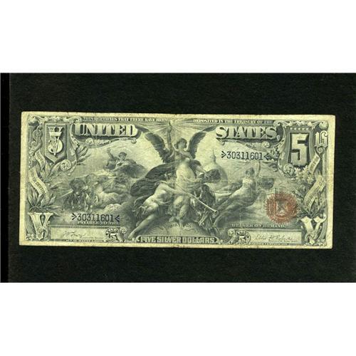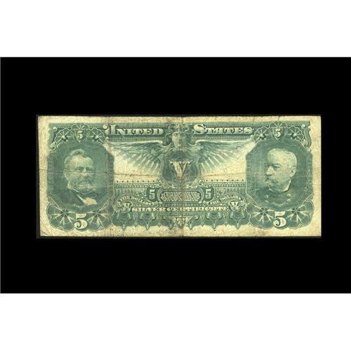 <B>Fr. 270 $5 1896 Silver Certificate Very Good-Fine.</B></I> This is still the most beautiful piece of currency that this government has ever issued, even a note in this advanced state of circulation. A couple of minor edge splits are noted, and those old men Grant and Sheridan could use a bath.