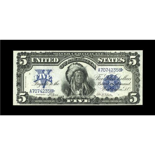 <B>Fr. 271 $5 1899 Silver Certificate Extremely Fine.</B></I> A crisp, original Indian Chief five with excellent centering and bold colors. A perfect, moderately circulated note for a type set, this affordable specimen is attractive for the grade and problem-free.<BR><BR><b>Shipping:</b> Coin/Currency (<a target="_blank" href="http://www.heritageauctions.com/common/shipping.php">view shipping information</a>)