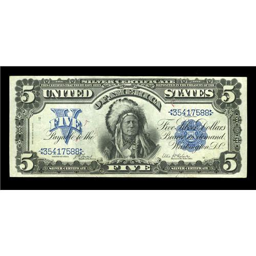 <B>Fr. 271 $5 1899 Silver Certificate Extremely Fine-About Uncirculated.</B></I> This stunning Chief has much original embossing present with a couple of faint, light folds seen. This is one of those tough mid-grades that there just don't seem to be enough of.