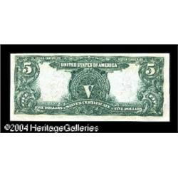 Fr. 271 $5 1899 Silver Certificate Gem New. The final n <B>Fr. 271 $5 1899 Silver Certificate Gem New.</B></I> The final note from this Cut Sheet, identical to the above, but with slightly better margins, although not in the class of the "A" note from this sheet. <BR><BR><B>Important notice:</B> Heritage usually auctions material at the rate of 200-250 lots per hour. On some occasions eBay Live bid software or the Internet may not be able to keep up with the pace of the auction. We recommend placing a realistic absentee bid now as insurance to avoid disappointment. Occasionally the auctioneer may eliminate or reject an eBay Live bid, and the auctioneer may also reopen a lot after the close of the eBay live bidding (usually because we missed an audience bid), and may reject your bid even if it shows you as the winning bidder. By bidding via eBay Live, you agree that Heritage may award the lot to another bidder at its sole discretion under the circumstances described above or any other reasonable circumstances. Since eBay bids are not shown to us until we open the lot on the floor, we treat those bids just like floor bids. In most cases the floor responds before the eBay bid is presented to us, due to Internet lag time, so for consistency we have made it a policy that floor bids are always considered first over tie eBay live bids. Also please note that all Heritage lots purchased through eBay Live carry a 20% Buyer's Premium. Please make sure you read the Terms and Conditions before you bid. This lot is being auctioned in conjunction with a live floor auction by Heritage Galleries & Auctioneers. All final auction and invoice information will be supplied by Heritage Galleries & Auctioneers, and all other information should be considered preliminary. Lot:17440