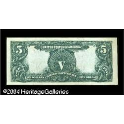 Fr. 271 $5 1899 Silver Certificate Superb Gem New. An e <B>Fr. 271 $5 1899 Silver Certificate Superb Gem New.</B></I> An essentially flawless Chief. The note has beautifully broad margins, fully bright colors, deep original embossing and all the technical and aesthetic merit that the very fussiest collector could ever hope to find in a Type Note. No notes were added to this collection after 1982, and the man who put it together had an eye for top-quality currency that few collectors of his time possessed. Ultimately fresh and flashy. <BR><BR><B>Important notice:</B> Heritage usually auctions material at the rate of 200-250 lots per hour. On some occasions eBay Live bid software or the Internet may not be able to keep up with the pace of the auction. We recommend placing a realistic absentee bid now as insurance to avoid disappointment. Occasionally the auctioneer may eliminate or reject an eBay Live bid, and the auctioneer may also reopen a lot after the close of the eBay live bidding (usually because we missed an audience bid), and may reject your bid even if it shows you as the winning bidder. By bidding via eBay Live, you agree that Heritage may award the lot to another bidder at its sole discretion under the circumstances described above or any other reasonable circumstances. Since eBay bids are not shown to us until we open the lot on the floor, we treat those bids just like floor bids. In most cases the floor responds before the eBay bid is presented to us, due to Internet lag time, so for consistency we have made it a policy that floor bids are always considered first over tie eBay live bids. Also please note that all Heritage lots purchased through eBay Live carry a 20% Buyer's Premium. Please make sure you read the Terms and Conditions before you bid. This lot is being auctioned in conjunction with a live floor auction by Heritage Galleries & Auctioneers. All final auction and invoice information will be supplied by Heritage Galleries & Auctioneers, and all other information should be considered preliminary. Lot:17434