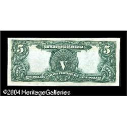 Fr. 271 $5 1899 Silver Certificate Superb Gem New. This <B>Fr. 271 $5 1899 Silver Certificate Superb Gem New.</B></I> This "A"-position note is the first piece of a fresh and gorgeous Cut Sheet that we are pleased to offer. All four notes are supremely fresh, with deep, original embossing, ideal color and pristine, untouched surfaces. The only difference among the four is the centering and margin size, and this "A"-position note is the best of the group. <BR><BR><B>Important notice:</B> Heritage usually auctions material at the rate of 200-250 lots per hour. On some occasions eBay Live bid software or the Internet may not be able to keep up with the pace of the auction. We recommend placing a realistic absentee bid now as insurance to avoid disappointment. Occasionally the auctioneer may eliminate or reject an eBay Live bid, and the auctioneer may also reopen a lot after the close of the eBay live bidding (usually because we missed an audience bid), and may reject your bid even if it shows you as the winning bidder. By bidding via eBay Live, you agree that Heritage may award the lot to another bidder at its sole discretion under the circumstances described above or any other reasonable circumstances. Since eBay bids are not shown to us until we open the lot on the floor, we treat those bids just like floor bids. In most cases the floor responds before the eBay bid is presented to us, due to Internet lag time, so for consistency we have made it a policy that floor bids are always considered first over tie eBay live bids. Also please note that all Heritage lots purchased through eBay Live carry a 20% Buyer's Premium. Please make sure you read the Terms and Conditions before you bid. This lot is being auctioned in conjunction with a live floor auction by Heritage Galleries & Auctioneers. All final auction and invoice information will be supplied by Heritage Galleries & Auctioneers, and all other information should be considered preliminary. Lot:17437