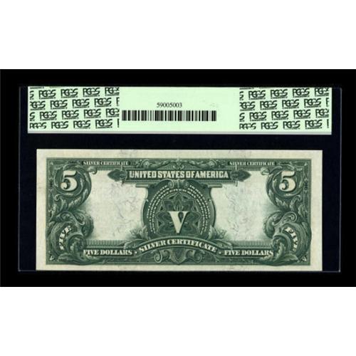<B>Fr. 273 $5 1899 Silver Certificate PCGS Very Choice New 64.</B></I> Solid margins run along the top and bottom edges of this issue. Overall, the eye appeal is closer to Gem. <BR><BR><b>Shipping:</b> Coins & Currency (<a target="_blank" href="http://www.heritageauctions.com/common/shipping.php">view shipping information</a>)