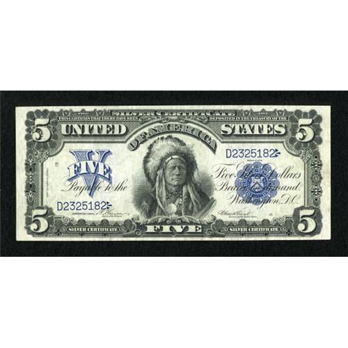 <B>Fr. 273 $5 1899 Silver Certificate Very Fine-Extremely Fine.</B></I> This Chief faces up nicely, but there are signs of once being wet. A couple of pinholes are also noticed.<BR><I>From The John Ameen Collection</B></I><BR><BR><b>Shipping:</b> Coins & Currency (<a target="_blank" href="http://www.heritageauctions.com/common/shipping.php">view shipping information</a>)