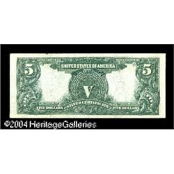 Fr. 274 $5 1899 Silver Certificate Extremely Fine. A ni <B>Fr. 274 $5 1899 Silver Certificate Extremely Fine.</B></I> A nice natural note, with all its original embossing. Unfortunately, there are two rust stains, one in the top edge and one below the left serial number. <BR><BR><B>Important notice:</B> Heritage usually auctions material at the rate of 200-250 lots per hour. On some occasions eBay Live bid software or the Internet may not be able to keep up with the pace of the auction. We recommend placing a realistic absentee bid now as insurance to avoid disappointment. Occasionally the auctioneer may eliminate or reject an eBay Live bid, and the auctioneer may also reopen a lot after the close of the eBay live bidding (usually because we missed an audience bid), and may reject your bid even if it shows you as the winning bidder. By bidding via eBay Live, you agree that Heritage may award the lot to another bidder at its sole discretion under the circumstances described above or any other reasonable circumstances. Since eBay bids are not shown to us until we open the lot on the floor, we treat those bids just like floor bids. In most cases the floor responds before the eBay bid is presented to us, due to Internet lag time, so for consistency we have made it a policy that floor bids are always considered first over tie eBay live bids. Also please note that all Heritage lots purchased through eBay Live carry a 20% Buyer's Premium. Please make sure you read the Terms and Conditions before you bid. This lot is being auctioned in conjunction with a live floor auction by Heritage Galleries & Auctioneers. All final auction and invoice information will be supplied by Heritage Galleries & Auctioneers, and all other information should be considered preliminary. Lot:17445