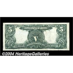 Fr. 274 $5 1899 Silver Certificate Extremely Fine-About New. Very well centered, with perfect color, a beautiful appearance, and three deceptively hard to spot vertical folds. All the visual appeal of a perfect Gem. <BR><BR><B>Important notice:</B> Heritage usually auctions material at the rate of 200-250 lots per hour. On some occasions eBay Live bid software or the Internet may not be able to keep up with the pace of the auction. We recommend placing a realistic absentee bid now as insurance to avoid disappointment. Occasionally the auctioneer may eliminate or reject an eBay Live bid, and the auctioneer may also reopen a lot after the close of the eBay live bidding (usually because we missed an audience bid), and may reject your bid even if it shows you as the winning bidder. By bidding via eBay Live, you agree that Heritage may award the lot to another bidder at its sole discretion under the circumstances described above or any other reasonable circumstances. Since eBay bids are not shown to us until we open the lot on the floor, we treat those bids just like floor bids. In most cases the floor responds before the eBay bid is presented to us, due to Internet lag time, so for consistency we have made it a policy that floor bids are always considered first over tie eBay live bids. Also please note that all Heritage lots purchased through eBay Live carry a 20% Buyer's Premium. Please make sure you read the Terms and Conditions before you bid. <BR><BR><B>IMPORTANT ANNOUNCEMENT ABOUT RESERVES:</B> Heritage now divulges all reserves on its web site 7 days before every auction. If you want to know whether the reserve on this lot has been met, and if not, what the reserve amount is, please visit this lot page on the HeritageCoin.com web site, or email: bid@HeritageGalleries.com