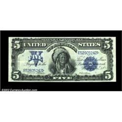 Fr. 275 $5 1899 Silver Certificate Extremely Fine. This good-looking Chief has unusually broad, even margins all the way around. Important notice: We expect to be auctioning lots at the rate of 200-250 per hour. Sometimes eBay Premier live bid software cannot keep up with that pace, so we strongly recommend that you place a realistic proxy bid now as insurance to avoid disappointment. Also please note that all Heritage/CAA lots purchased through eBay Premier carry a 20% Buyer's Premium. Please make sure you read the Terms and Conditions.