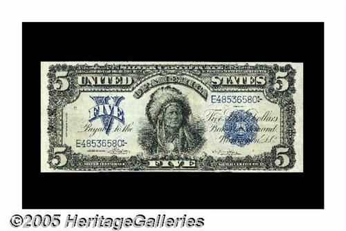 <B>Fr. 275 $5 1899 Silver Certificate Extremely Fine.</B></I> Lightly quarter-folded but perfectly original and save for the folds, a Choice Uncirculated note in every sense.