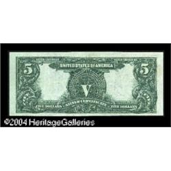Fr. 276 $5 1899 Silver Certificate Choice Extremely Fin <B>Fr. 276 $5 1899 Silver Certificate Choice Extremely Fine.</B></I> Fr. 276, which bears the Napier-Thompson signature combination is by far the rarest of the Chiefs, with less than fifty examples known in all grades combined. We have been able to offer very few of this Friedberg number over the years. This one is lightly quarter folded, but it has retained its original embossing and perfect colors. This rare note also boasts broad, even margins. <BR><BR><B>Important notice:</B> Heritage usually auctions material at the rate of 200-250 lots per hour. On some occasions eBay Live bid software or the Internet may not be able to keep up with the pace of the auction. We recommend placing a realistic absentee bid now as insurance to avoid disappointment. Occasionally the auctioneer may eliminate or reject an eBay Live bid, and the auctioneer may also reopen a lot after the close of the eBay live bidding (usually because we missed an audience bid), and may reject your bid even if it shows you as the winning bidder. By bidding via eBay Live, you agree that Heritage may award the lot to another bidder at its sole discretion under the circumstances described above or any other reasonable circumstances. Since eBay bids are not shown to us until we open the lot on the floor, we treat those bids just like floor bids. In most cases the floor responds before the eBay bid is presented to us, due to Internet lag time, so for consistency we have made it a policy that floor bids are always considered first over tie eBay live bids. Also please note that all Heritage lots purchased through eBay Live carry a 20% Buyer's Premium. Please make sure you read the Terms and Conditions before you bid. This lot is being auctioned in conjunction with a live floor auction by Heritage Galleries & Auctioneers. All final auction and invoice information will be supplied by Heritage Galleries & Auctioneers, and all other information should be considered preliminary. Lot:17456