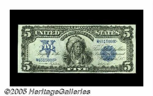 <B>Fr. 277 $5 1899 Silver Certificate CGA Gem Uncirculated 65.</B></I> One look at this beautiful Chief and it is easy to see how it received the 65 grade.