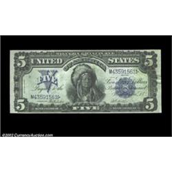 Fr. 277 $5 1899 Silver Certificate Extremely Fine. This nice Chief has a little soil, but the margins are large, the centering is excellent and the original embossing can still be easily seen. It's a very pretty note. Important notice: We expect to be auctioning lots at the rate of 200-250 per hour. Sometimes eBay Premier live bid software cannot keep up with that pace, so we strongly recommend that you place a realistic proxy bid now as insurance to avoid disappointment. Also please note that all Heritage/CAA lots purchased through eBay Premier carry a 20% Buyer's Premium. Please make sure you read the Terms and Conditions.