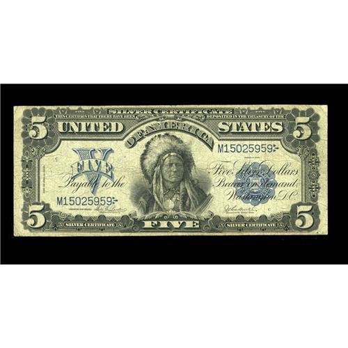 <B>Fr. 277 $5 1899 Silver Certificate Fine.</B></I> A problem free circulated Indian Chief free from pinholes or other distractions.