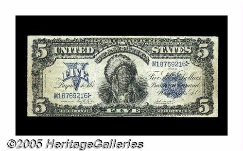 <B>Fr. 277 $5 1899 Silver Certificate Very Fine.</B></I> A middle grade circulated Chief.