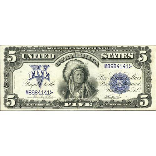 <B>Fr. 277 $5 1899 Silver Certificate Very Fine-Extremely Fine.</B></I> Dark inks and white paper are merits of this Chief.