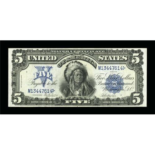 <B>Fr. 277 $5 1899 Silver Certificate Very Fine-Extremely Fine.</B></I> Fresh and wholly original. This is the grade, and this note has the appearance, of what everyone wants when they buy a VF. Totally unmolested, clean, and premium in all respects. While certainly not a rare number, Fr. 277s are seen with far less frequency than most of the other Chiefs. <BR><BR><b>Shipping:</b> Coins & Currency (<a target="_blank" href="http://www.heritageauctions.com/common/shipping.php">view shipping information</a>)