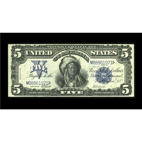<B>Fr. 279 $5 1899 Silver Certificate Extremely Fine.</B></I> Nice original surfaces highlight this lightly folded Chief.