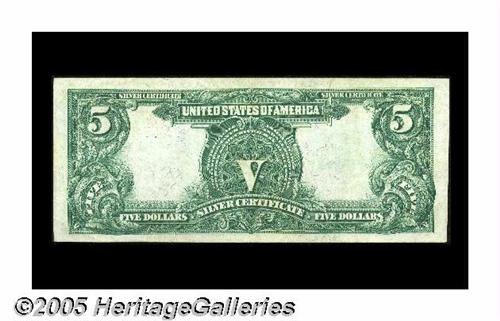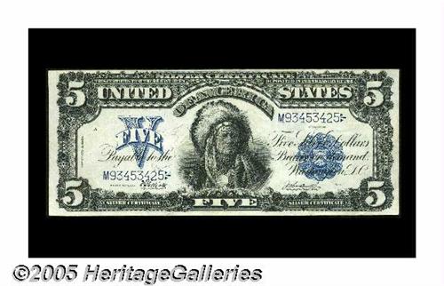<B>Fr. 279 $5 1899 Silver Certificate Extremely Fine.</B></I> A totally original example with bright colors and all its embossing still in evidence. While Friedberg 279 certainly cannot be considered rare with over 120 pieces known, it's one of the less frequently encountered Chief numbers.