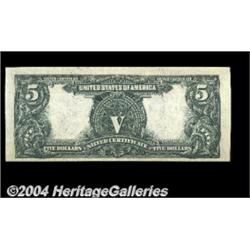 Fr. 280 $5 1899 Silver Certificate Very Choice New. A near Gem example of this second to last Chief signature combination. The margins are beautifully broad, and the note exhibits bold ink color and sharp print quality. <BR><BR><B>Important notice:</B> Heritage usually auctions material at the rate of 200-250 lots per hour. On some occasions eBay Live bid software or the Internet may not be able to keep up with the pace of the auction. We recommend placing a realistic absentee bid now as insurance to avoid disappointment. Occasionally the auctioneer may eliminate or reject an eBay Live bid, and the auctioneer may also reopen a lot after the close of the eBay live bidding (usually because we missed an audience bid), and may reject your bid even if it shows you as the winning bidder. By bidding via eBay Live, you agree that Heritage may award the lot to another bidder at its sole discretion under the circumstances described above or any other reasonable circumstances. Since eBay bids are not shown to us until we open the lot on the floor, we treat those bids just like floor bids. In most cases the floor responds before the eBay bid is presented to us, due to Internet lag time, so for consistency we have made it a policy that floor bids are always considered first over tie eBay live bids. Also please note that all Heritage lots purchased through eBay Live carry a 20% Buyer's Premium. Please make sure you read the Terms and Conditions before you bid. <BR><BR><B>IMPORTANT ANNOUNCEMENT ABOUT RESERVES:</B> Heritage now divulges all reserves on its web site 7 days before every auction. If you want to know whether the reserve on this lot has been met, and if not, what the reserve amount is, please visit this lot page on the HeritageCoin.com web site, or email: bid@HeritageGalleries.com