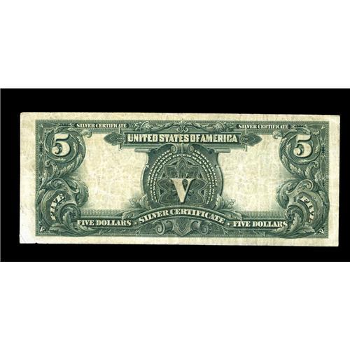 Fr. 281 $5 1899 Silver Certificate Fine. Though wet at Fr. 281 $5 1899 Silver Certificate Fine.
