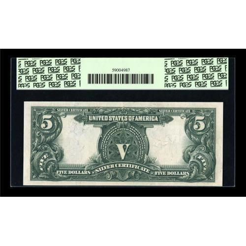 <B>Fr. 281 $5 1899 Silver Certificate PCGS About New 53.</B></I> Decent centering is noticed on this Chief that is in a most sought after collector grade.<BR><BR><b>Shipping:</b> Coins & Currency (<a target="_blank" href="http://www.heritageauctions.com/common/shipping.php">view shipping information</a>)