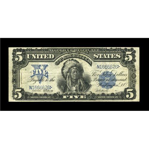 <B>Fr. 281 $5 1899 Silver Certificate Very Fine.</B></I> This is an original mid-grade Chief without any edge tears.