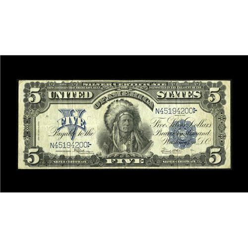 <B>Fr. 281 $5 1899 Silver Certificate Very Fine.</B></I> A handsome, problem-free Chief with great centering.