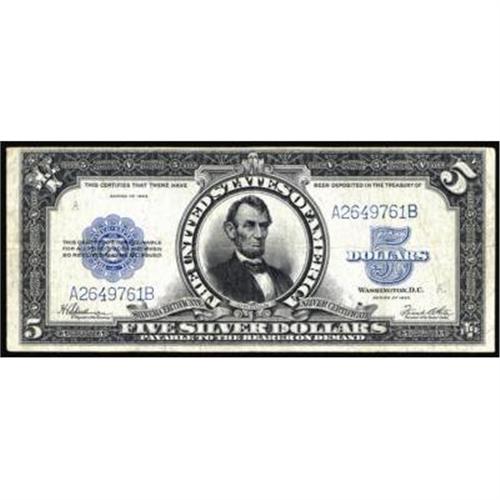 <style type="text/css"> body, td, th { font-family: Arial, Helvetica, sans-serif; font-size: 12px; color: #482424; margin: 0px; padding: 0px; } #header { background-image: url(http://www.bowersandmerena.com/ebay/images/template_v3_01.gif); clear: both; background-color: #590303; border-top-width: 2px; border-top-style: solid; border-top-color: #B38C4F;}#header #header_wrapper { height: 75px; clear: both; width: 800px; margin-right: auto; margin-left: auto; background-image: url(http://www.bowersandmerena.com/ebay/images/template_v3_03.gif); background-repeat: no-repeat; background-position: right; color: #F3EDCC;}#header #header_wrapper #header_logo { float: left; height: 75px; width: 444px; background-image: url(http://www.bowersandmerena.com/ebay/images/template_v3_02.gif); background-repeat: no-repeat; font-size: 10px; text-transform: capitalize; color: #B38C4F;}#header #header_wrapper #header_right { float: left; height: 75px; width: 356px; text-align: right;}#header #header_wrapper #header_right #headerLoginBtn { margin-bottom: 30px;}#header #header_wrapper #header_right input#txtSearch { color: #B49056; border: 1px solid #B49056; width: 175px; padding-top: 3px; padding-right: 3px; padding-bottom: 4px; padding-left: 3px;}#nav { height: 37px; background-image: url(http://www.bowersandmerena.com/ebay/images/template_v3_05.gif); clear: both;}#nav #nav_wrapper { height: 35px; width: 800px; margin-right: auto; margin-left: auto; border-left-width: 1px; border-left-style: solid; border-left-color: #B38C4F;}#nav #nav_wrapper a { padding-right: 15px; padding-left: 15px; border-right-width: 1px; border-right-style: solid; border-right-color: #B38C4F; height: 25px; padding-top: 10px; display: block; float: left; text-decoration: none; font-weight: bold; color: #5D0303;}#nav #nav_wrapper a:hover { color: #B38C4F;}#nav #nav_wrapper #search { float: right; padding-top: 7px;}#nav #nav_wrapper #search #txtSearch { font-family: Arial, Helvetica, sans-serif; font-size: 10px; text-transform: uppercase; color: #D2AE75; border: 1px solid #B38C4F; padding: 3px;}#content_bgd { background-image: url(http://www.bowersandmerena.com/ebay/images/template_v3_09.gif); background-repeat: repeat-y; background-position: center; padding-top: 15px; padding-bottom: 15px; background-color: #FBFBDB;}#content_wrapper { clear: both; height: auto; width: 800px; margin-right: auto; margin-left: auto;}.LotDetailWhite{ line-height:normal; font-size:13px; font-family: arial,helvetica,sans-serif; color: White; font-weight: bold;}.LotDetailInformation{ line-height:normal; font-size: 13px; font-family: arial,helvetica,sans-serif;}.LotDetailMessage{ line-height:normal; font-size: 13px; font-family: arial,helvetica,sans-serif; color: red;}}tr.HeaderAuctionTitle td { color: #000000; font-weight: bold; padding: 2px; background-image: url(http://www.bowersandmerena.com/ebay/images/template_v3_05.gif); background-repeat: repeat-x; border-bottom-width: 1px; border-bottom-style: solid; border-bottom-color: #B38C4F;}table.AuctionSummary a, table.AuctionSummary a:link, table.AuctionSummary a:visited { color: #0000FF; text-decoration: none;}}td.tableHeaderLeft { border-left-width: 1px; border-left-style: solid; border-left-color: #B38C4F;}td.tableHeaderRight { border-right-width: 1px; border-right-style: solid; border-right-color: #B38C4F;}td.tableCellMiddle { border-left-width: 1px; border-left-style: solid; border-left-color: #B38C4F; border-right-width: 1px; border-right-style: solid; border-right-color: #B38C4F; padding: 5px;}tr.footer td { border-top-width: 1px; border-top-style: solid; border-top-color: #B38C4F;}</style></head><body><div id="header"> <div id="header_wrapper"> <div id="header_logo"> </div> <div id="header_right"> </div> </div></div><div id="nav"> <div id="nav_wrapper"> <a href="http://www.bowersandmerena.com">Our eBayLive Auctions</a> <a href="#PaymentInfo">Payment Information</a> <a href="#ShippingInfo">Shipping Information</a> <a href="#About">About Bowers and Merena</a> </div></div><div id="content_bgd"> <div id="content_wrapper"> <table width="100%" border="0" cellpadding="5" cellspacing="0" class="AuctionSummary"> <tbody> <tr class="HeaderAuctionTitle" style="height: 25px;"> <td align="left" class="tableHeaderLeft" > </td> <td align="center" class="tableHeaderRight"> <span style="font-size: large;">Lot #82. Fr. 282. 1923 $5 Silver Certificate. Very Fine.</span> </td> </tr> <tr> <td colspan="3" class="tableCellMiddle"> A problem-free and solidly Very Fine example of the always popular Porthole note. Nice margins, good color and no difficulties inconsistent with the assigned grade. Est. $1,200 - $1,600