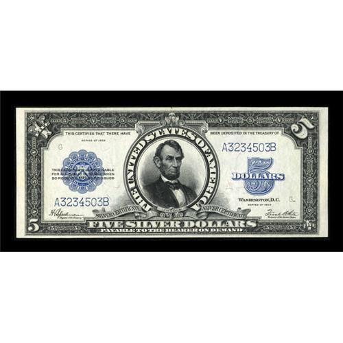 <B>Fr. 282 $5 1923 Silver Certificate Extremely Fine-About New.</B></I> This piece appears fully Gem, though there are a couple of light bends that are noted at either side of the portrait. An attractive issue with all the eye appeal anyone could expect from a Porthole.<B><BR></B></I><I>From The Drew Keough Collection</B></I><BR><BR><b>Shipping:</b> Coins & Currency (<a target="_blank" href="http://www.heritageauctions.com/common/shipping.php">view shipping information</a>)
