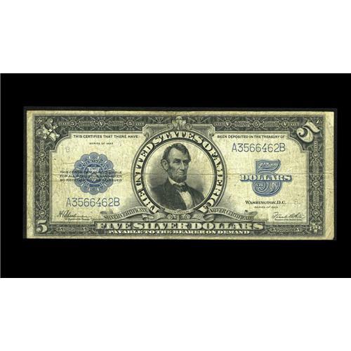 <B>Fr. 282 $5 1923 Silver Certificate Fine.</B></I> A nicely margined middle grade circulated note free from pinholes or other distractions and still displaying a surprising degree of crispness to the paper.