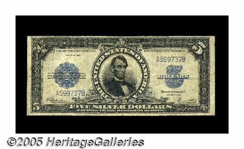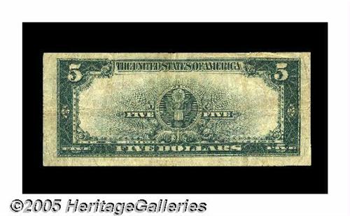 <B>Fr. 282 $5 1923 Silver Certificate Very Fine.</B></I> A perfectly natural Porthole ideal as a middle-grade representative of this always in demand type. A handsome, moderately circulated example.