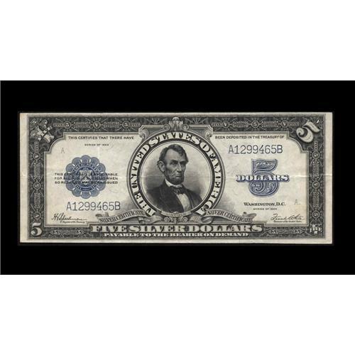 <B>Fr. 282 $5 1923 Silver Certificate Very Fine-Extremely Fine.</B></I> A nice natural Porthole Five with strong color, good margins, and strict paper originality. It falls just short of the full XF grade.