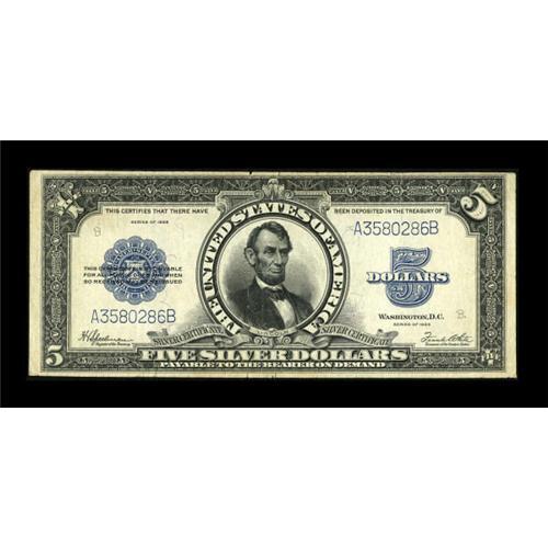 <B>Fr. 282 $5 1923 Silver Certificate Very Fine.</B></I> There are two edge splits at the top--one of which begins as a small nick. The colors are excellent on this Lincoln Porthole type. <BR><BR><b>Shipping:</b> Coins & Currency (<a target="_blank" href="http://www.heritageauctions.com/common/shipping.php">view shipping information</a>)