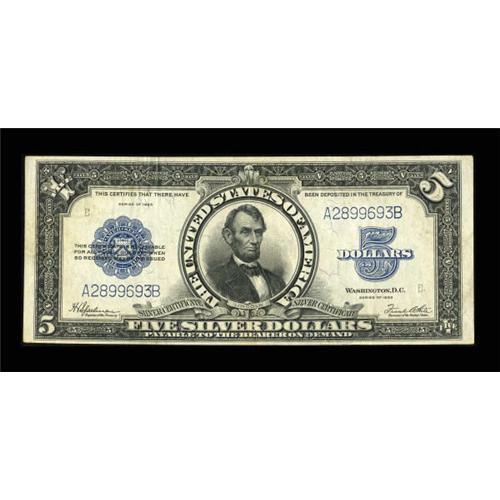 <B>Fr. 282 $5 1923 Silver Certificate Very Fine-Extremely Fine.</B></I> The paper color is just a hair toned down, but this Porthole is well margined with strong ink color and a nice overall appearance.<BR><BR><b>Shipping:</b> Coins & Currency (<a target="_blank" href="http://www.heritageauctions.com/common/shipping.php">view shipping information</a>)