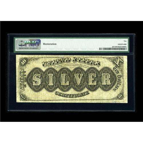 <B>Fr. 287 $10 1880 Silver Certificate PMG Very Good 10.</B></I> PMG comments about a restoration on this piece which certainly does little to distract from it. Always popular as a type note, it should quickly find a new home.<BR><I>From The Collection of Daniel Weissman</B></I><BR><BR><b>Shipping:</b> Coin/Currency (<a target="_blank" href="http://www.heritageauctions.com/common/shipping.php">view shipping information</a>)