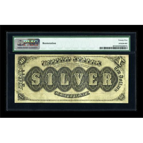 <B>Fr. 287 $10 1880 Silver Certificate PMG Very Fine 25.</B></I> Another lovely Large Size type note from this wonderful collection that offers a pleasing mid-grade look. Bright colors and solid margins highlight this example that will fill a hole in someone's collection tonight.<B><BR></B></I><I>From The John Ameen Collection</B></I><BR><BR><b>Shipping:</b> Coins & Currency (<a target="_blank" href="http://www.heritageauctions.com/common/shipping.php">view shipping information</a>)