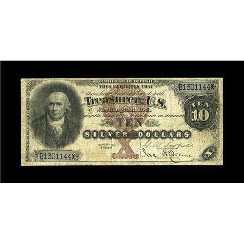 <B>Fr. 287 $10 1880 Silver Certificate Very Good.</B></I> This is a popular type with this example looking better than its assigned grade. A well executed small repair at right does little to distract.<BR><BR><b>Shipping:</b> Coin/Currency (<a target="_blank" href="http://www.heritageauctions.com/common/shipping.php">view shipping information</a>)