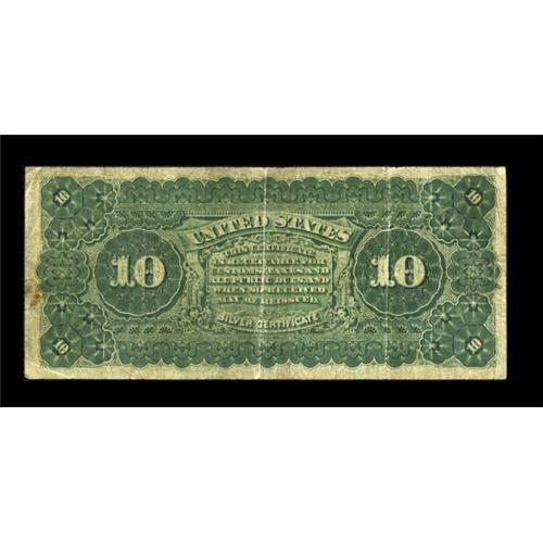 <B>Fr. 293 $10 1886 Silver Certificate Fine.</B></I> 1886 Tombstones have all-but-disappeared from the market. This one is a near perfect representation of the grade. It is well circulated to be sure, but the edges are solid. The face is wholly problem-free, and the back has only a single minor stain at its left edge. A very scarce type. <BR><BR><b>Shipping:</b> Coins & Currency (<a target="_blank" href="http://www.heritageauctions.com/common/shipping.php">view shipping information</a>)