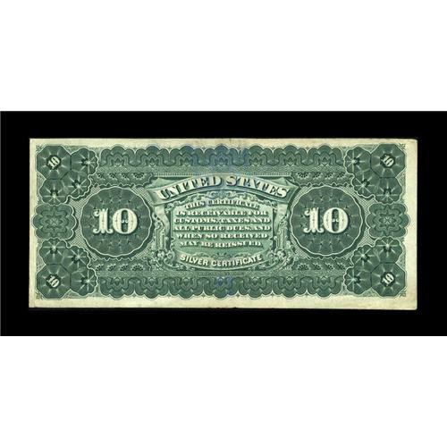 <B>Fr. 293 $10 1886 Silver Certificate Very Fine.</B></I> There is some very light staining and a tiny repaired edge split on this scarce Early Back Tombstone. The overall appearance of the note is quite nice, and it has some claims to a higher grade.<BR><I>From The Collection of Greg Southward</B></I><BR><BR><b>Shipping:</b> Coins & Currency (<a target="_blank" href="http://www.heritageauctions.com/common/shipping.php">view shipping information</a>)
