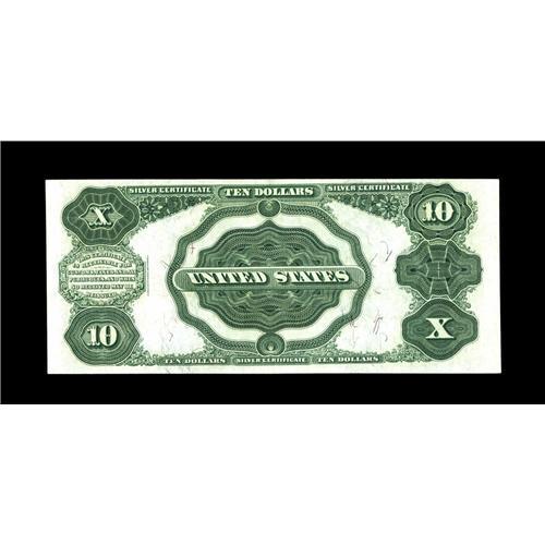 <B>Fr. 299 $10 1891 Silver Certificate Extremely Fine-About New.</B></I> This Tombstone is blessed with the extra large side margins, though a touch tight at the top. Some embossing is noticed along with a couple faint folds, one in the corner at right and a horizontal fold. Still a colorful example with plenty of eye appeal.<BR><BR><b>Shipping:</b> Coin/Currency (<a target="_blank" href="http://www.heritageauctions.com/common/shipping.php">view shipping information</a>)