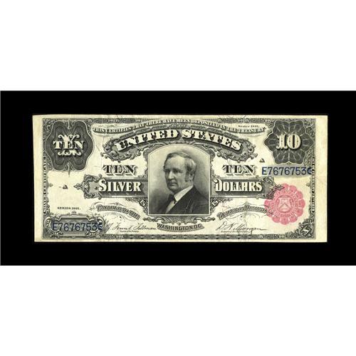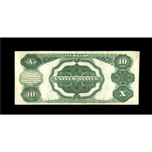 <B>Fr. 299 $10 1891 Silver Certificate Very Fine.</B></I> This Tombstone Ten has the unusually broad side margins that are occasionally seen on this type. That centering, along with good color, gives this $10 Silver Certificate lots of eye appeal.<BR><BR><b>Shipping:</b> Coin/Currency (<a target="_blank" href="http://www.heritageauctions.com/common/shipping.php">view shipping information</a>)