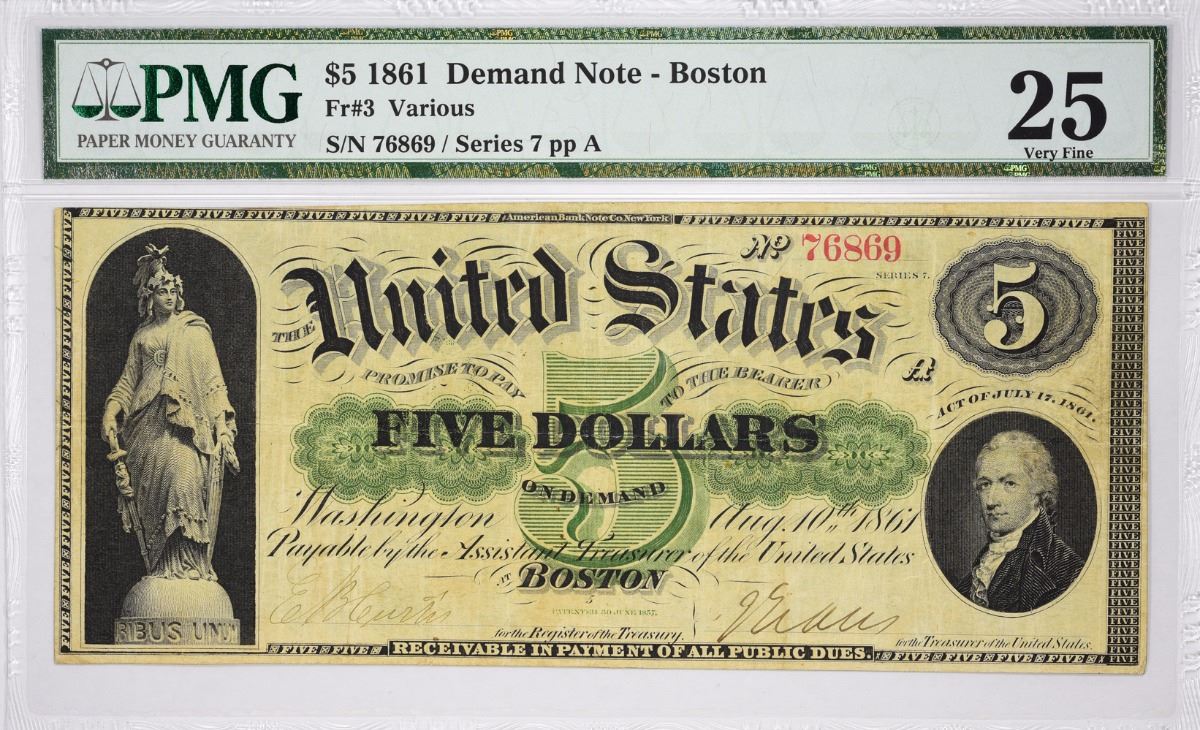 Fr. 3. 1861 $5 Demand Note. PMG Very Fine 25.