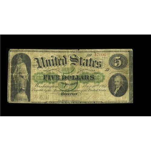 <B>Fr. 3 $5 1861 Demand Note Very Good.</B></I> A well circulated example with some edge splits and internal separation points. A historical piece nonetheless.