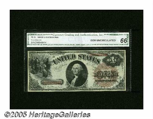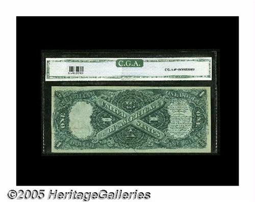 <B>Fr. 30 $1 1880 Legal Tender CGA Gem Uncirculated 66.</B></I> The original embossing of this pretty, large seal Ace can be easily seen through the third party holder.