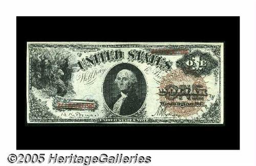 <B>Fr. 30 $1 1880 Legal Tender Choice New.</B></I> Gem paper quality and originality and would have been well within the definition of that grade but for the fact that the bottom margin lacks just a bit to meet our standard for the higher grade. Overall, as fresh and well embossed a note as one could hope to locate from this attractive and sought after series