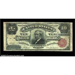 Fr. 301 $10 1891 Silver Certificate Fine. Solid for the grade and problem-free save for a single, very short edge tear at the top. Important notice: We expect to be auctioning lots at the rate of 200-250 per hour. Sometimes eBay Premier live bid software cannot keep up with that pace, so we strongly recommend that you place a realistic proxy bid now as insurance to avoid disappointment. Also please note that all Heritage/CAA lots purchased through eBay Premier carry a 20% Buyer's Premium. Please make sure you read the Terms and Conditions.