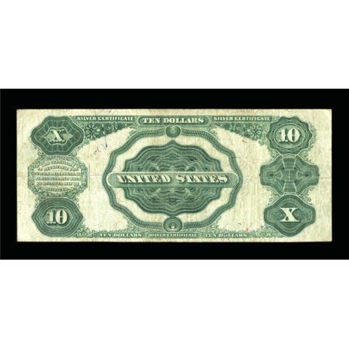 <B>Fr. 301 $10 1891 Silver Certificate Fine-Very Fine.</B></I> Evenly circulated and 100% problem-free. If you collect circulated type notes and are looking for a truly nice representative Tombstone, then this is your piece. <BR><BR><b>Shipping:</b> Coins & Currency (<a target="_blank" href="http://www.heritageauctions.com/common/shipping.php">view shipping information</a>)