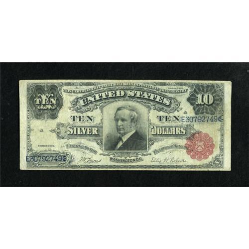 <B>Fr. 301 $10 1891 Silver Certificate Very Good-Fine.</B></I> The paper is very snappy on this Tombstone that shows soiling. It also has lightly handled edges for the grade and a few pinholes present.<BR><BR><b>Shipping:</b> Coins & Currency (<a target="_blank" href="http://www.heritageauctions.com/common/shipping.php">view shipping information</a>)